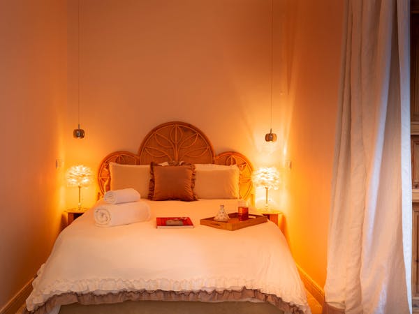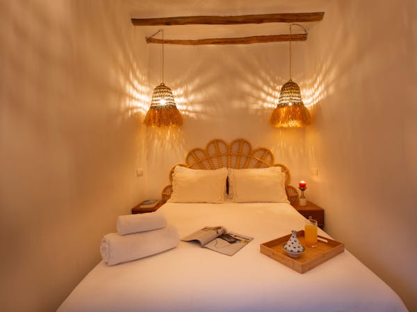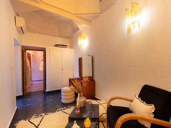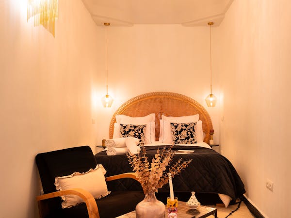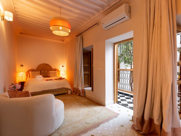 The room has reversible air conditioning and combines bohemian style with Moroccan craftsmanship in an elegant, soothing setting.