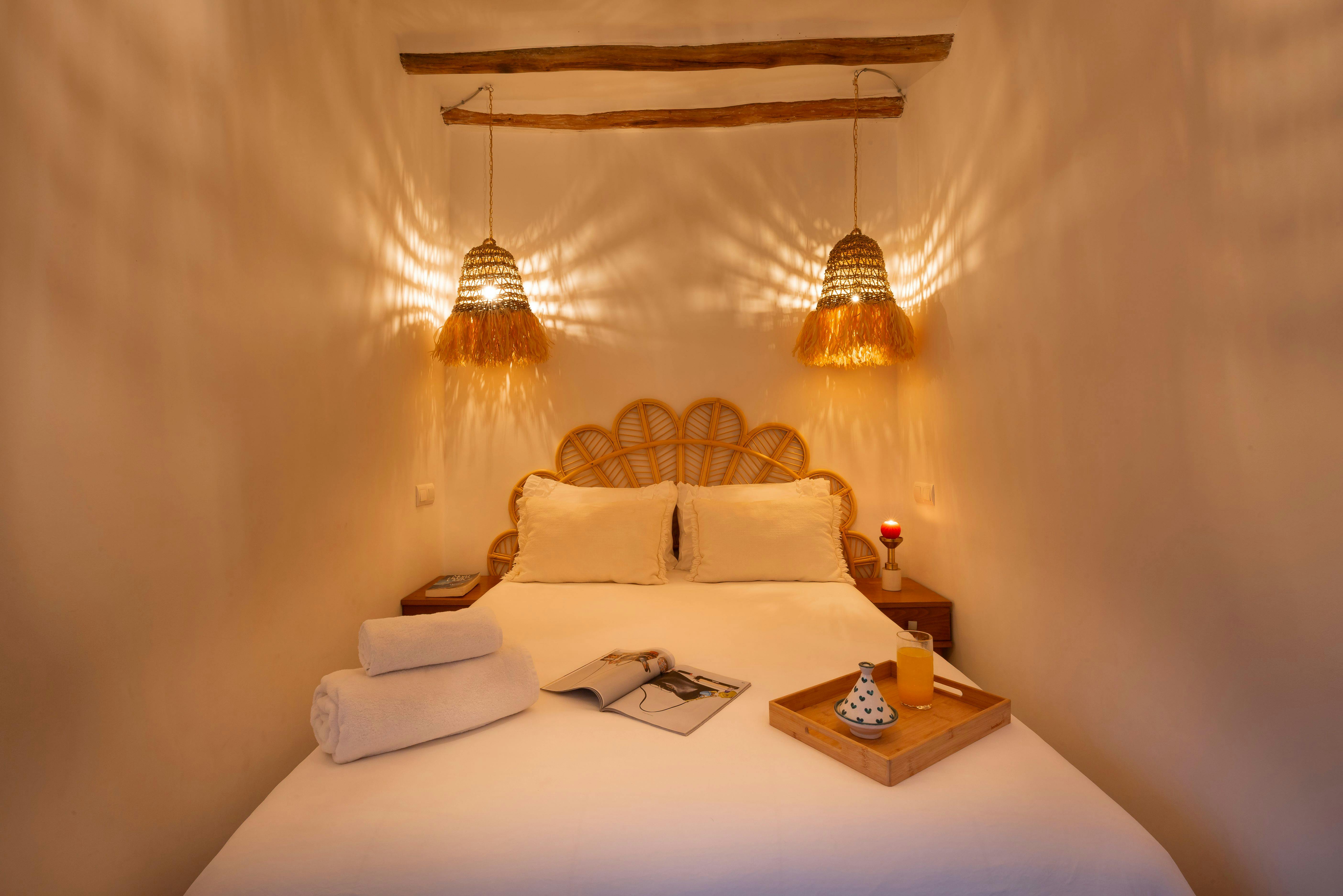 The room has reversible air conditioning and combines bohemian style with Moroccan craftsmanship in an elegant, soothing setting.